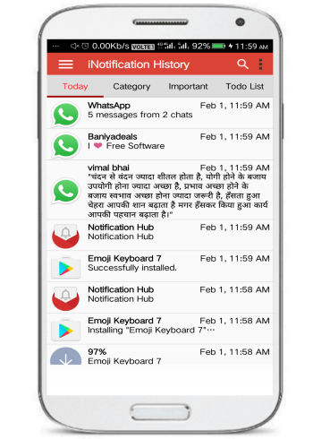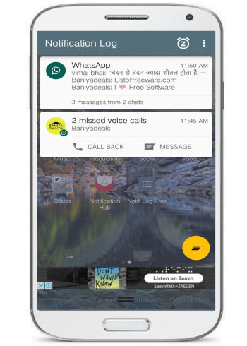 Notification Hub is a free Android app to store app notifications. From this app, you can select some apps or all apps whose notifications you want to store and access later. Apart from that, you can also choose to hide notifications of specific or all Android apps from showing up in the Android notification area. In simpler words, you will just see a notification indicating that you have received a notification and you will have to open this app to see the notification. The notifications displayed in this app are quite similar to Android notifications, as you can see in the screenshot above.
