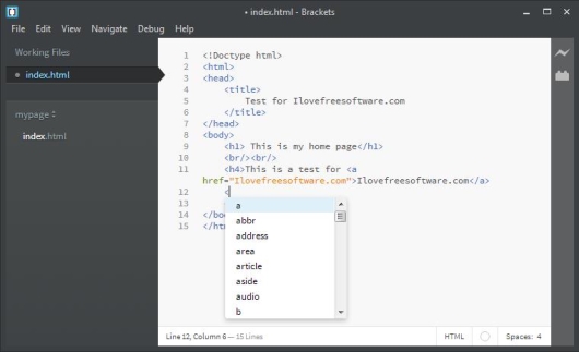 Brackets is a good html code editor that has all the features that would encourage a developer to try it. The code suggestion feature would help you save a lot of time, specially if you’re a beginner and dealing with the complexities of the keywords and function names that might be hard for you to remember. The live preview is a feature that I just can’t ignore highlighting about. It lets you view the changes taking place for in real-time. It is good tool for anyone who is looking for a change and want to try out a new html code editor. I would suggest you to try it out, come back and tell us how it was.