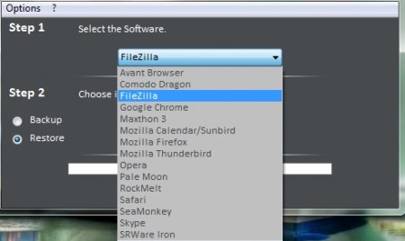 The first backup software in the list is Heckasoft Backup & Restore. It is a very lightweight and simple to use software. You do not get lot of additional options but you can perform the main task efficiently. On the interface of the software you can select the browser or software for which you want to create the backup. The software has a long list of supported browsers ( including Firefox, Chrome, Safari etc.) & and software and you can also add any software on your own. After that you can select the task that you want to perform ( Backup or restore) and simply hit the start button. Your task will be finished in a matter of seconds. You can later restore from the backup using this same software.