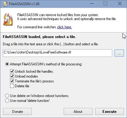 Viruses can also report to be “locked” so they’re not easy to remove. This application was created for those who are battling infections and just locked files in general. FileASSASSIN adds options for unlocking and deleting files directly to the right click context menu. To access the actual application interface and more options that it offers (see image above), you’ll need to launch it by clicking on the desktop icon. Once the application is running, it will scan for processes that have locked up the selected file or folder and end it so that they can be manipulated.