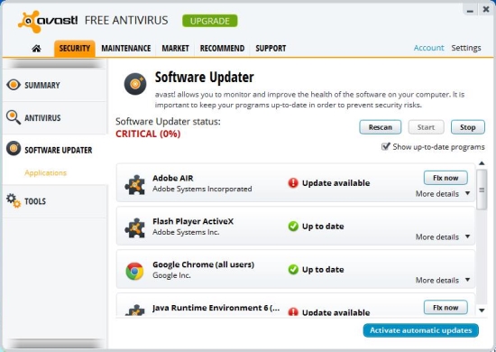 Software Updater: Software Updater keeps track of all the software on your system and alerts you if any update is available to minimize security risks.
