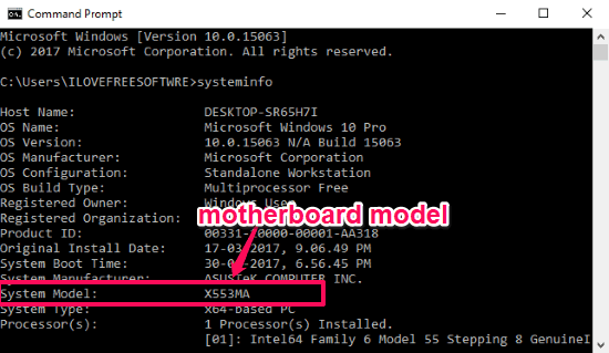 Step 2: As soon as you type the command, press the Enter key and then it will start processing your PC information. Once the processing is complete, you can simply scroll down and see the motherboard model associated with the “System Model” option.