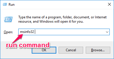 Step 1: To get started, simply press “Windows Key + R” to open up the “Run” program. After that, you would need to type this “msinfo32” run command in the input field and hit Enter.