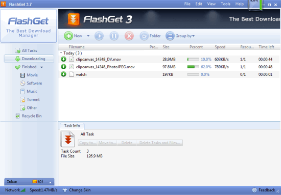 GetGo Download Manager is another good alternative to Internet Download Manager. It comes with feature to search for online videos, music files, exe files, etc., right from its interface. You can batch download files and maximum 10 concurrent connections per download can be used. Before downloading a particular file, it automatically detects the category (video, software, pictures, etc.). This is handy to easily sort downloading and downloaded files on its interface. Apart from this, it also stores the history of downloaded files.