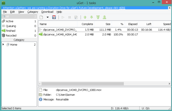 Another useful Internet Download Manager alternative is ‘uGet‘. It provides a simple interface, but performs the task of downloading multiple files successfully. Left section of its interface will show you all the active downloads, finished, and queued downloads. It monitors Windows clipboard and when you copy a video link or any other file’s link, it automatically prompts you to download that file using this software.