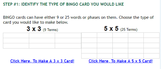 Teachnology is an online bingo card generator for teachers. By just following a few simple steps, you can create bingo cards.