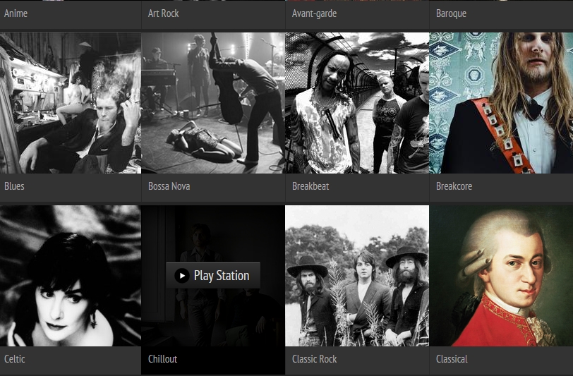 The stations on this website are divided into three categories: popular, recommended, and saved. The website is primarily meant to access band music. There are genres like blues, alternative metal, black metal, and more. You will also find other genres like country music, jazz, etc. However, you might miss out on some mainstream Hollywood songs and albums.