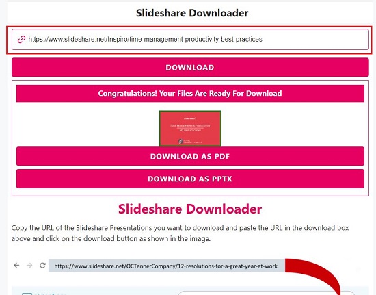 This is yet another tool to download slideshows from the SlideShare platform. The link to access this tool has been provided below.