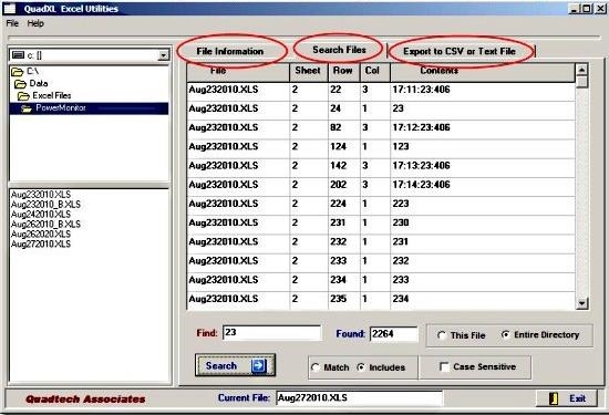Last in the list is QuadXL, a free Excel utility software that provides a bunch of useful tools to work with Microsoft Excel. It’s a stand alone application that mainly provides three useful functions: File Information, File Search, and File Export.