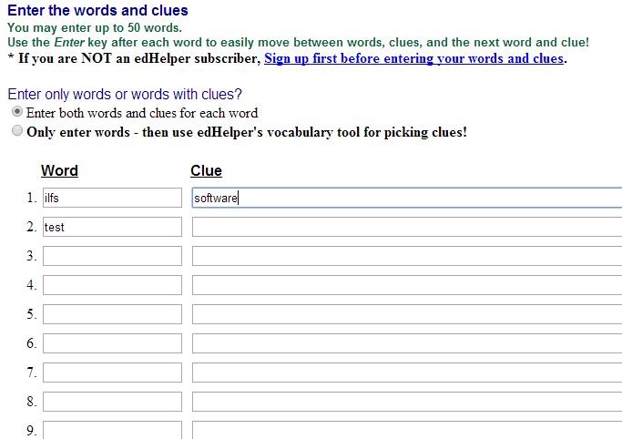 edhelper is the next website to create crossword puzzles online. This website is the most heterogeneous in terms of providing options. Not only can you add words and clues, but also set different difficulty levels, select different printable keys, choose to keep out hints, select crossword layout and more. The puzzles that you create are generated in PDF format and you can enter up to 50 words in one puzzle. You also need to have a free account in order to generate the crossword puzzle. There are more options available that you will find when you go through the entire process.