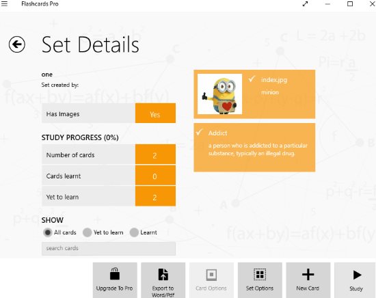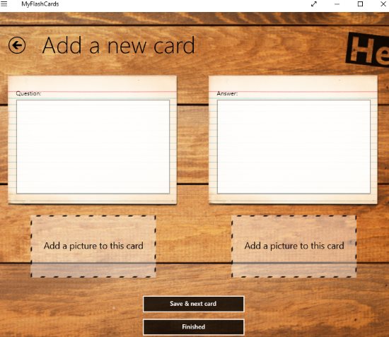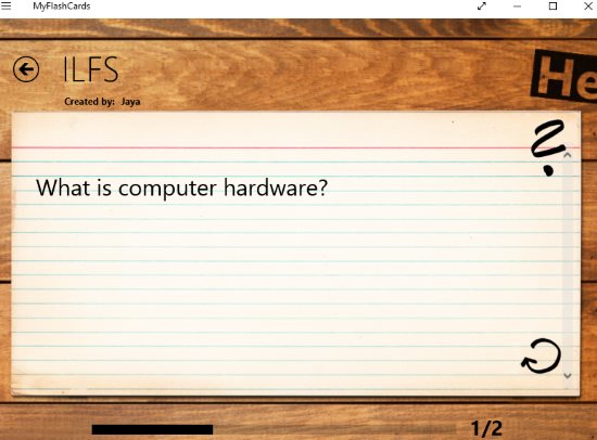 This article covers 5 free Windows 10 flashcard maker apps. Flashcards can help you to learn any subject easily and improve your memory at the same time. With the help of flashcards you can remember more through audio based learning and prepare for exams. In the study mode of these apps you can see the question on front side of the flashcard and the answer is visible on the back side of the flashcard. You can then check how much you remember without seeing the answer of the question.