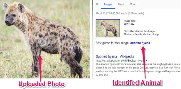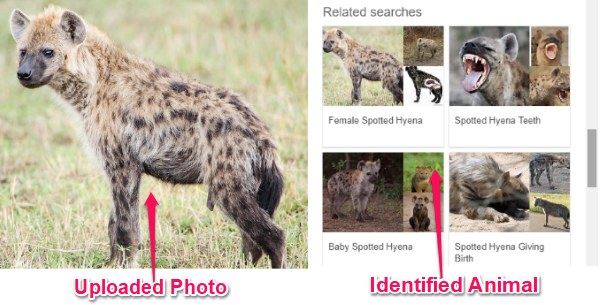 When you do that, it will analyze the photo and then generate the search result where you can see some posts (like a Wikipedia page) related to that particular animal. Among the search results, you will also notice the name of the animal that you are searching for. Unlike the above 2 methods, this one is not a perfect tool to identify animals from photos, but it can still do the job for you.