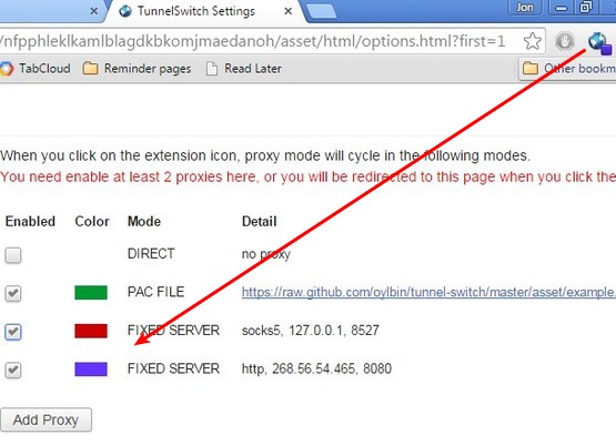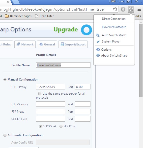 Best Proxy Switcher is similar to the Proxy SwitchySharp, but it works a bit differently from it. For example it comes with a built-in list of proxies that it scrapes from the web. New lists can be downloaded should the current one not work properly.