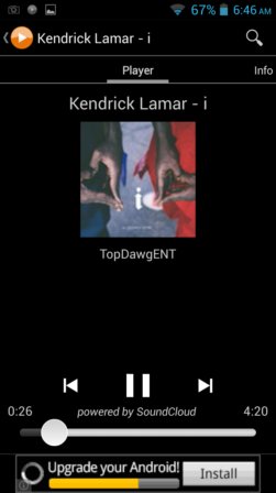 sCloud Music Browser & Player doesn’t have the kind of immersive experience when it comes to searching and streaming songs from SoundCloud. You’ll notice that the SoundCloud app opens up song info fullscreen, on the image above.