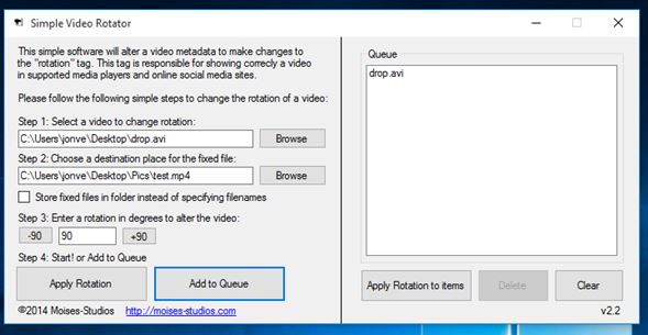 This last video rotator software is exactly what its name says that it is, a simple video rotate software for Windows 10 that lets you rotate multiple videos using queues, without a lot of advanced settings like in the previously mentioned applications.