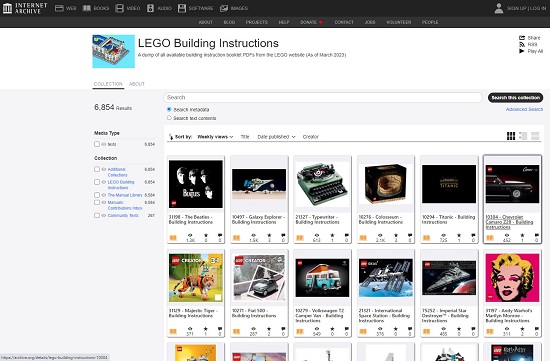 1. LEGO Building Instructions collection from the Internet Archive
