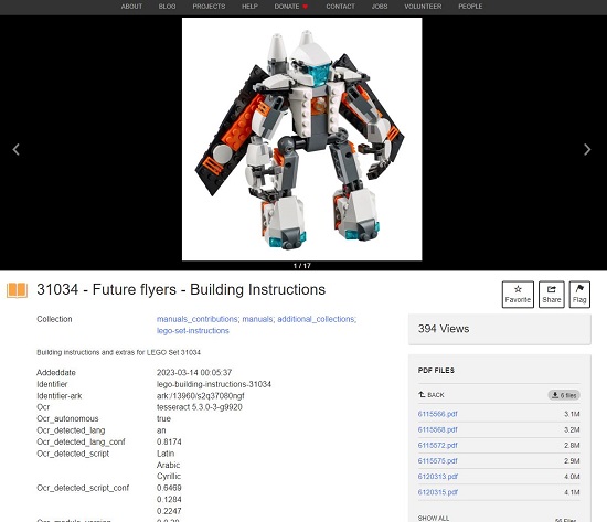 This was created in May 2023 and as per a description on the site, it comprises of a dump of all the available instruction booklets in PDF format from the LEGO website (as of March 2023).