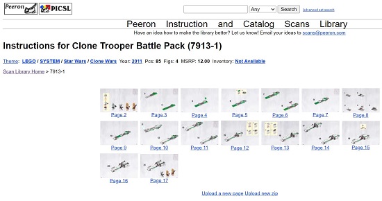 Let’s move on to Peeron, which is another large archive of instructions for LEGO sets that you can download as separate image files instead of a single PDF document.