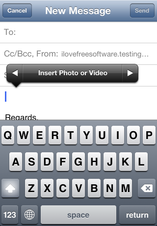 Many of you might be getting fed up with the fact that you have to first open Photo Album on your iPhone to select and import photos to mails. But with this tip, you can easily add images and videos to your mails directly from within the native mail app for iPhone. To do this, open the mail app and start composing new mail just like you do it normally. In the text body of mail, tap once on the area where you want to add image or video. On tapping, you will see following option: Insert Photo or Video.