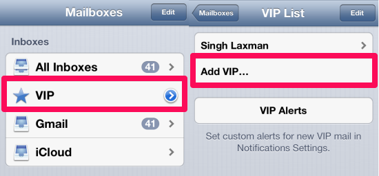 Similarly, to remove VIP in mail, Tap on Edit option at top right and then tap on Red color icon to delete the contact.