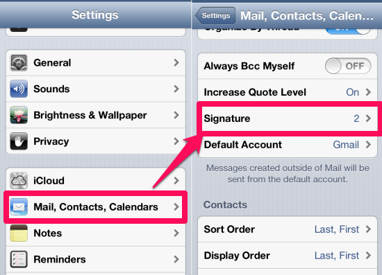 We all know that the default mail signature set by Apple is: “Sent from my iPhone/iPad/iPod”, depending on the device which you are using. Moreover, this email signature is set for all the mail accounts linked by you to the app. This email signature may be cool for showing off but its not good for sending professional mails. Thankfully, you can change it and even choose to setup a separate signature for each account that you have configured in your mail app for iOS. To do this, open Settings of your iPhone and then go to Mails, Contacts, Calendars.