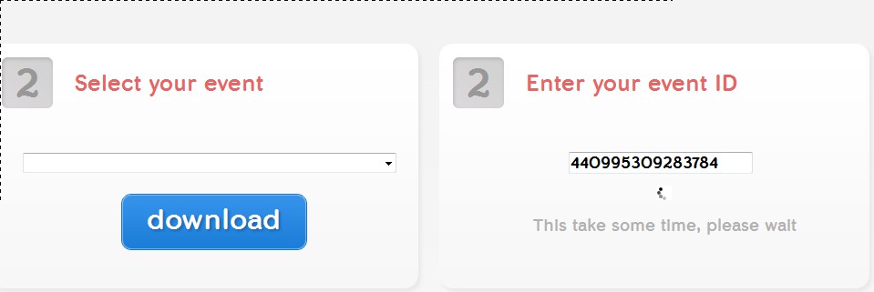 Screenshot above shows us the first step of the setup process. There’s actually two different services being offered by Evuli, the first one is the Facebook event guest list downloader, and the second one is the RSVP widget which allows you to generate a widget which you can use online to spread your event, to add it on websites.
