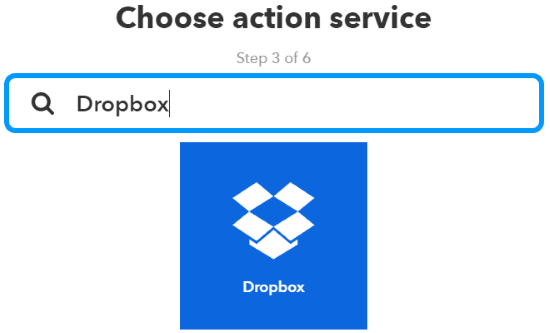 Step 5: When you’re all set with the trigger of the automated task, you can proceed to select the “Action” service by clicking on the “That” button. You have to simply find and select “Dropbox” as the action service.