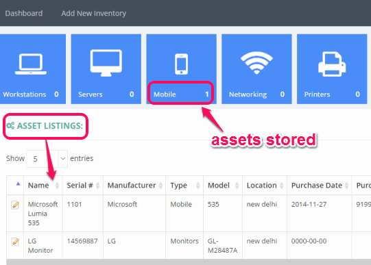 It lets you view your inventory on your dashboard. From your dashboard, you can check which asset is stored in which category (or in manufacturer). However, with all these features, this basic free version is limited to store only 10 assets. For storing more assets and avail the benefit of other features (like allow bulk import from csv files), you need to upgrade with premium plans.