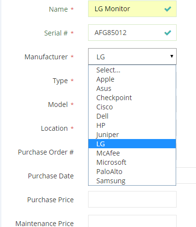 Apart from just using the preset manufacturer, you can add new manufacturer name to store assets. This helps you to sort assets and access them quickly. Moreover, you can also export the whole data to PC in PDF, excel, and csv format.