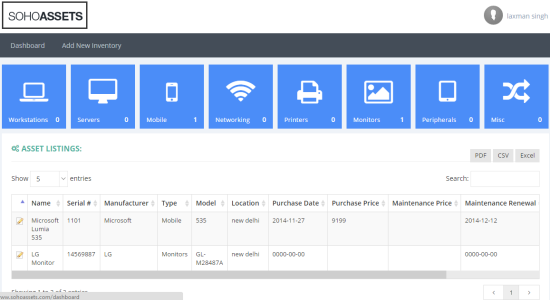 SohoAssets is very simple and quick way to manage assets. Still, the basic version is limited in features as well as in storing the information. For small offices, it can be useful. However, you can also upgrade to pro plan for storing more assets and use more features.