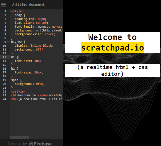 Scratchpad.io comes with a beautiful interface where writing HTML code or CSS becomes really interesting. The left section is used to enter the code and rest of the part of its interface show real-time output preview. This website also has syntax highlighting feature, so you can better check the code and make the changes.