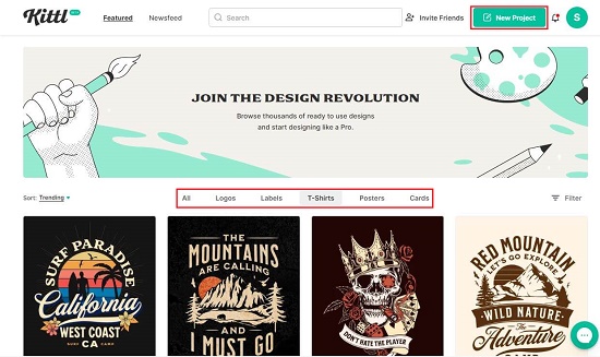 Kittle provides numerous ready-made templates, graphic design elements and more that you can readily use in your projects. These templates are neatly categorized into Logos, Labels, and Posters etc. and can be chosen from the Kittl homepage. Alternatively, they can also be accessed from the Editor Interface.