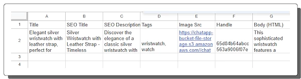 The above screenshot shows a preview of the Shopify CSV export of a product.