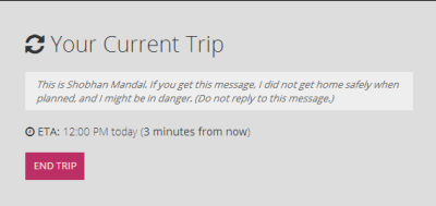 Now Lets go on a trip with 5M as my duration. The webpage gets a new section like the one given below allowing you to end the trip through the website. It looks like this: