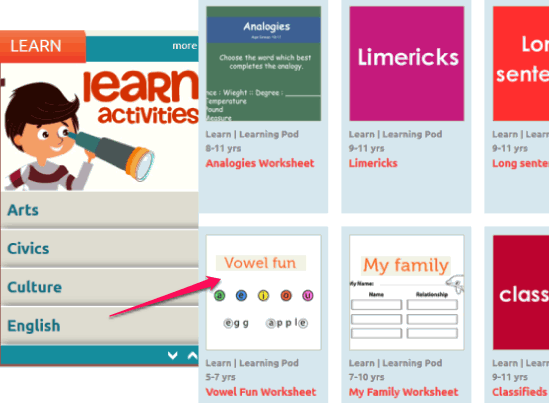 This section is helpful to explore general knowledge and perform interesting English activities. English activities include games, worksheets, and other things. Worksheets can also be downloaded to PC.