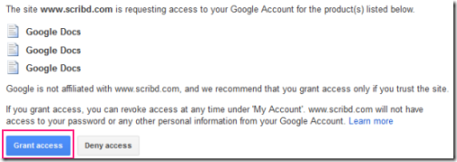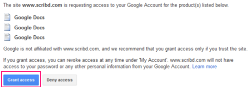 - Alternately, you may select the radio button to import your Google documents. Just click on the link and grant access when prompted.