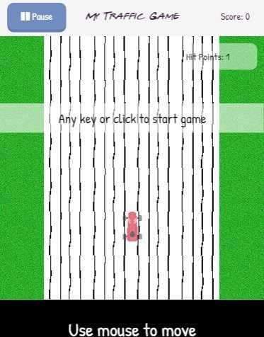 This game can be played using your mouse. You have to navigate the car on the road without hitting other cars. As soon as you hit another car, its game over for you. You are given one point for avoiding each car. If you are creating a game with multiple levels then you can also add power ups that can be collected during the game.
