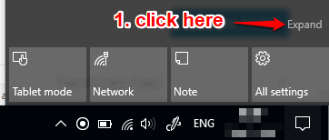 Step 1: Click the Action Center icon available at the bottom right corner in the system tray. When Action Center is opened, click on Expand option.
