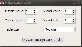 On its main window, you need to enter start and end value of X (for columns) and Y (for rows) to create a multiplication chart. After this, you can select the size of table accordingly (very small, small, medium, large and very large). Once after this, tap on Create Multiplication Table tab and table chart will be in front of you in another window.