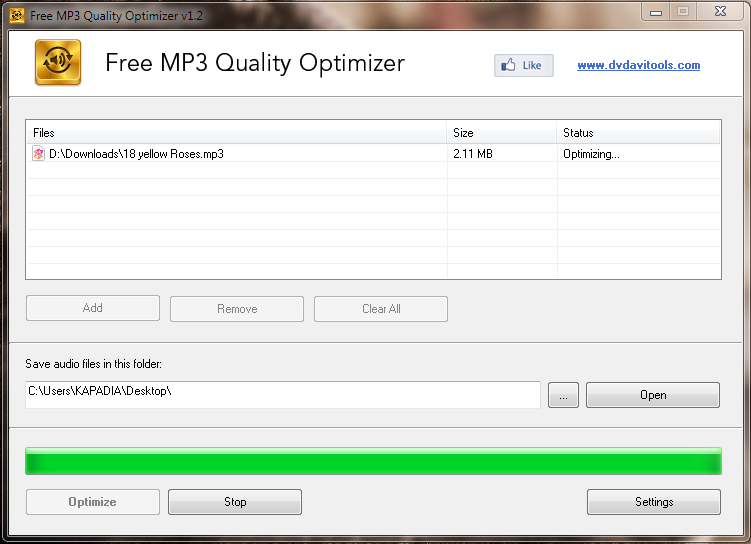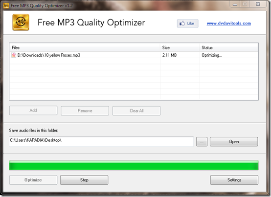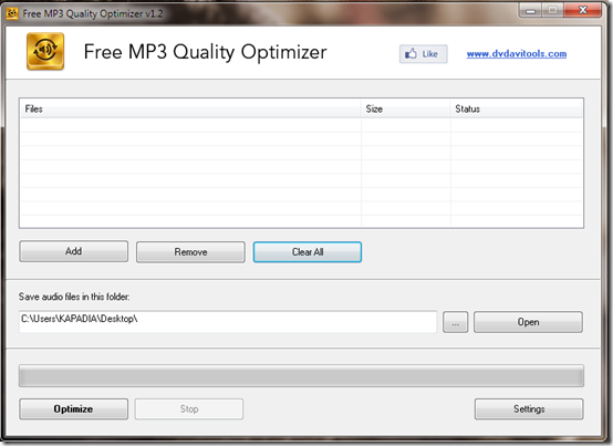 Free MP3 Quality Optimizer is an MP3 quality enhancing tool that lets you increase volume of your MP3 songs. It provides for improved quality of sound as well as increased loudness. This free MP3 optimizing tool changes the bit rate of the song to one of a higher quality (like 320 kbps) which is generally the preferred quality for clarity and loudness of an MP3 audio file. This application increases the volume of the the song through boosting the bitrate quality.