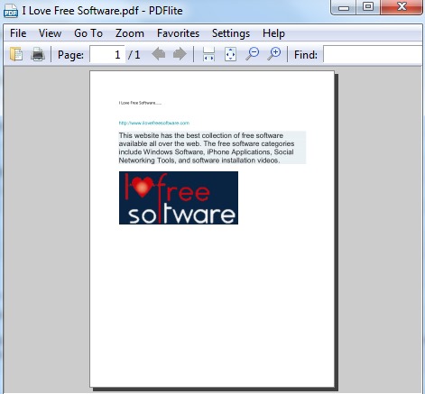 PDFlite is a free PDF viewer that lets you read PDF documents and provides virtual PDF printer feature to convert any text document to a PDF file. Not only it can open PDF files, it is able to open ePub books, xps documents, FictionBooks documents, DjVu documents, comic books, and more. And using its virtual PDF printer, you will be able to create PDF file from Notepad, MS Word, or any other applications that provides print option.
