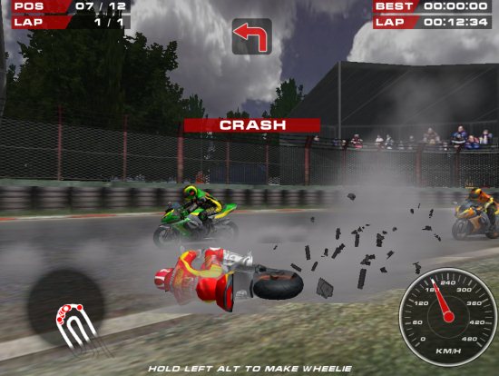 Stunts: The Left Alt button is used for making wheelie which actually makes your bike go faster and Shift button for making stoppie. Use Left Ctrl button for drifting.
