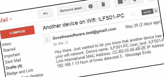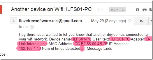 Personally, I really like this method of getting an email whenever any new device connects to Wi-Fi network. And I love the fact that all the information about the device is included in the email. If you do not want to get email, there are many other software also that you can use to monitor your Wi-Fi network, like: Who Is On My Wifi, SoftPerfect WiFi Guard, and Wifi Protector.