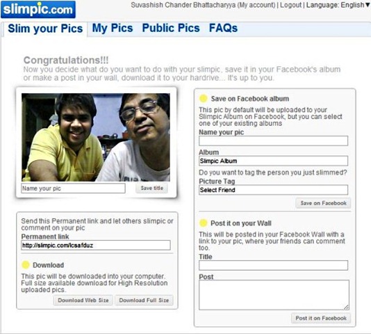 Slimpic is amusing enough. You can also make yourself gain or lose weight. You can also try that out on your friends pictures just for fun. You can upload pictures to Slimpic from your Facebook account as well as your hard drive. The photo effects provided by Slimpic look very real. Now its easy to look slim in no time, without exercising.