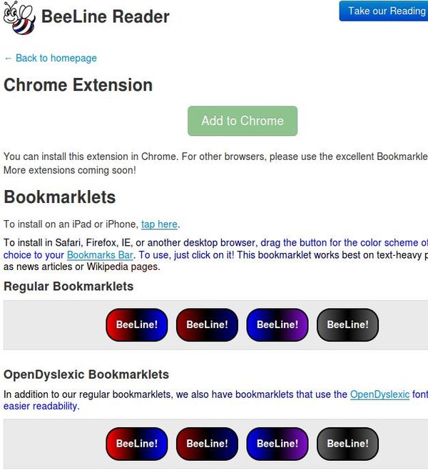 First open up the BeeLine website by clicking on the links down below and then install either the Chrome addon or one of the bookmarklets to your web browser’s bookmarks toolbar.