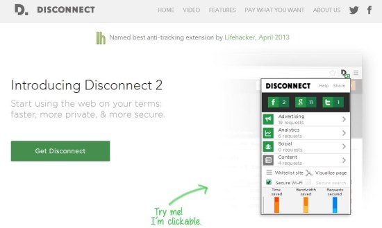 Disconnect 2 is a free browser extension that lets you track and block the invisible sites that tries to access your search and browsing history. It’s a simple and handy tool that helps in visualizing the tracking requests made to your browser from different web sources and blocks them from doing so. These include common tracking sites like Facebook, Twitter, Google, or other sites belonging to categories like advertisement, social and content, analytics, etc.