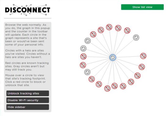 Disconnect 2 is available as a browser extension for Google Chrome and Mozilla Firefox and can be downloaded free of cost using the link given at the end of this article. The download will automatically install the extension to your browser and adds a toolbar icon in front of your browser’s address bar for quick access to the extension. Let’s have a brief look on the working part of Disconnect 2.