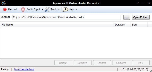 Apowersoft Free Online Audio Recorder is, like its name suggests, a free online audio recording software. This is a Java based application, Java runtime framework is required in order to make it work. After installing Java, the only thing that you need to do to open up Apowersoft Free Online Audio Recorder window is click on the Start Recording button on the website. That’s gonna trigger the Java applet, setup everything and leave you with the audio recorder interface.