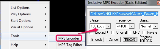 Here, tools option is also present using which you can access basic mp3 encoder and mp3 tag editor. But as mentioned above, mp3 tag editor didn’t work for me so you can try it on your own, and see if it really works. But, mp3 encoder works quite fine. It lets you add a wave file to convert into an mp3 file. Moreover, you can even customize bitrate, frequency, and output quality for output mp3 audio file.