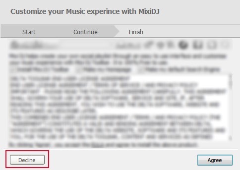 It is only 1.06 mb in size and wont take much time to download. Link for its download page is present below. It requires simple and basic steps to install but installation is ad-supported; so you need to be careful. It provides extra tools like webcake, Wajam, and Mixi Dj to install. If you want to ignore installation of these tools, then you can do it by clicking on available Decline button as highlighted in below screenshot. After this, you can move on to continue the installation of Free Ringtone Maker and can complete the installation.